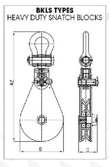 Type ShackleS.W.P (t)Sheave Diameter (mm)A2 (mm)B (mm)C (mm)For Wire Diameter (mm)Net Weight (kg)