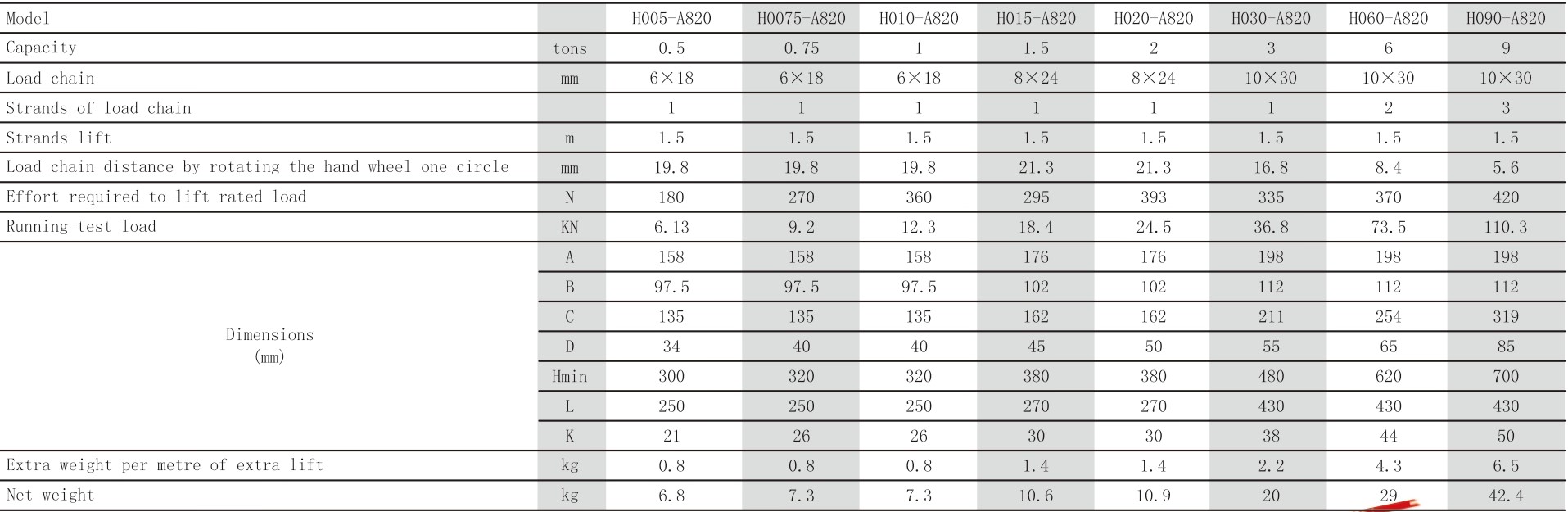 - Grade 80 Electrophoresis load chain. The stamping enlarged end ring supports 2.5times of rated load.